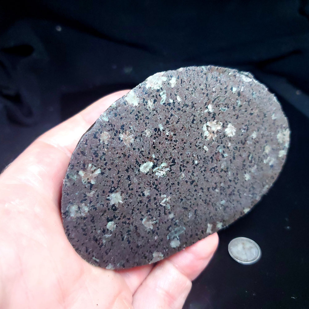 Weighs roughly 13 oz, measures roughly 4″ across.