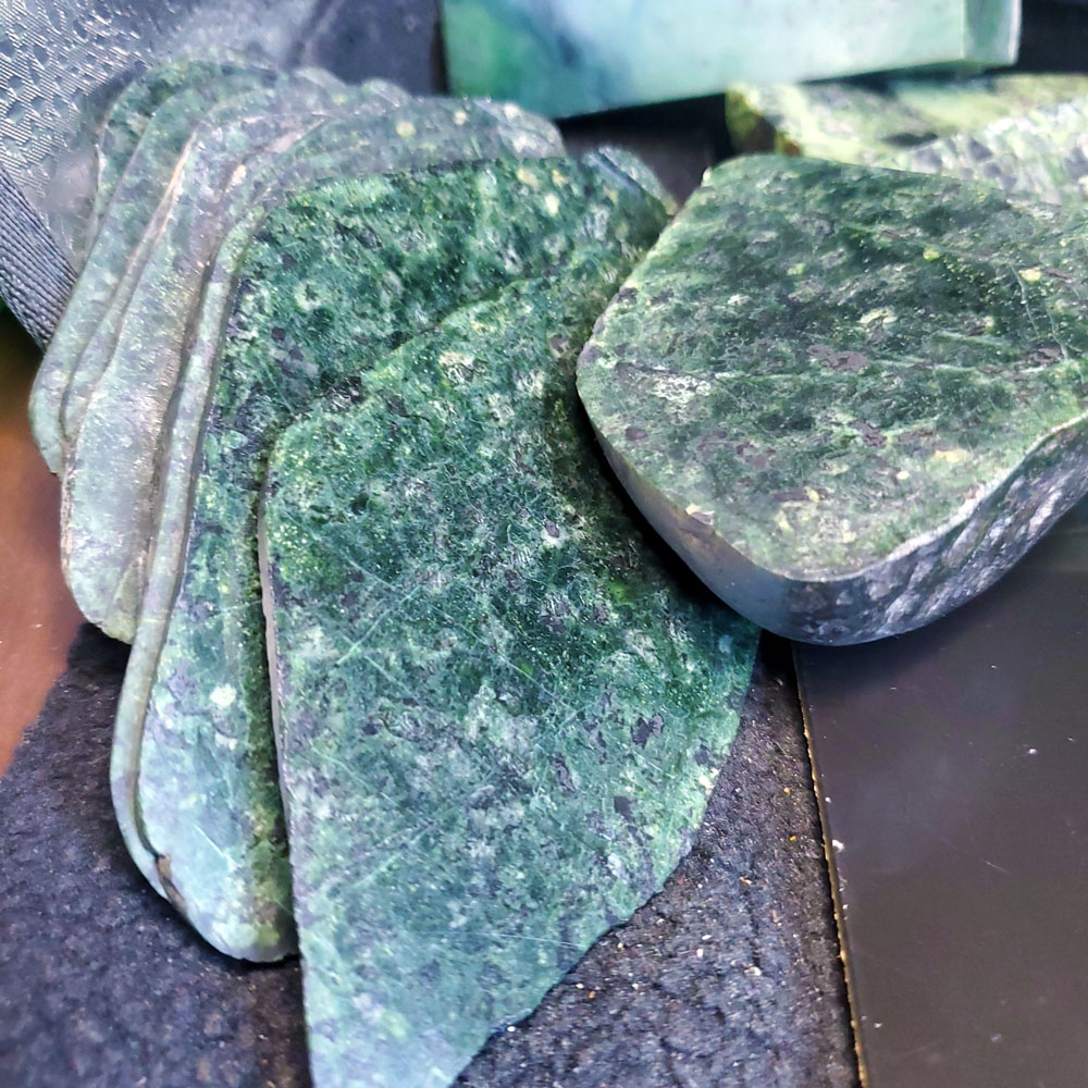 Purchasing one of these, you may end up with an end cap, slab or chunk. These rocks have not been tested, they may be nephrite or gem serpentine