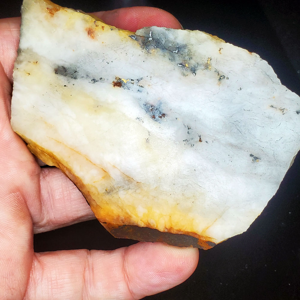 Each slab is quite fragile with fractures already there due to the blasting needed to harvest this stone. We will do our best to ship this in one piece but note, for Mt Baker Lightning Quartz, breakage can occur and we are not responsible for that. In the end, you are purchasing the weight of the stone with the visible gold.