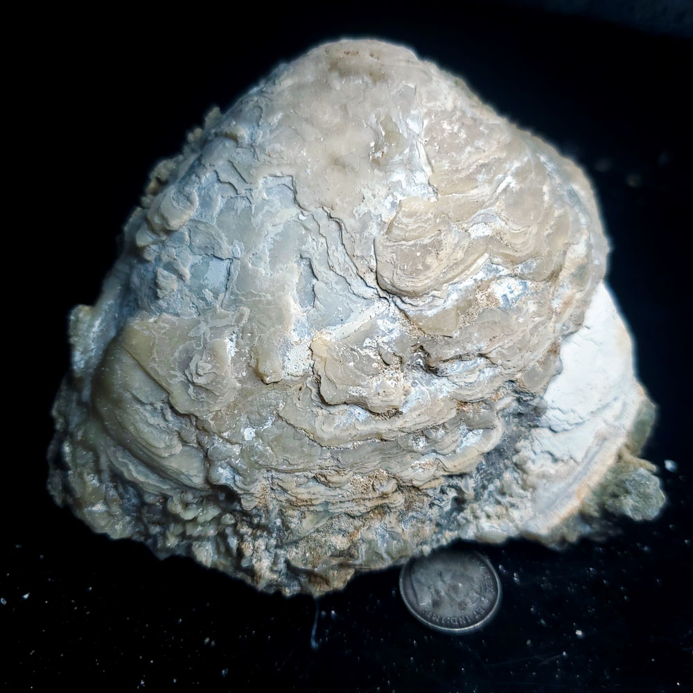 Each clamshell has UV properties and unique limestone host. These are fossilized which means they are rock not shell. However, they are still fragile.